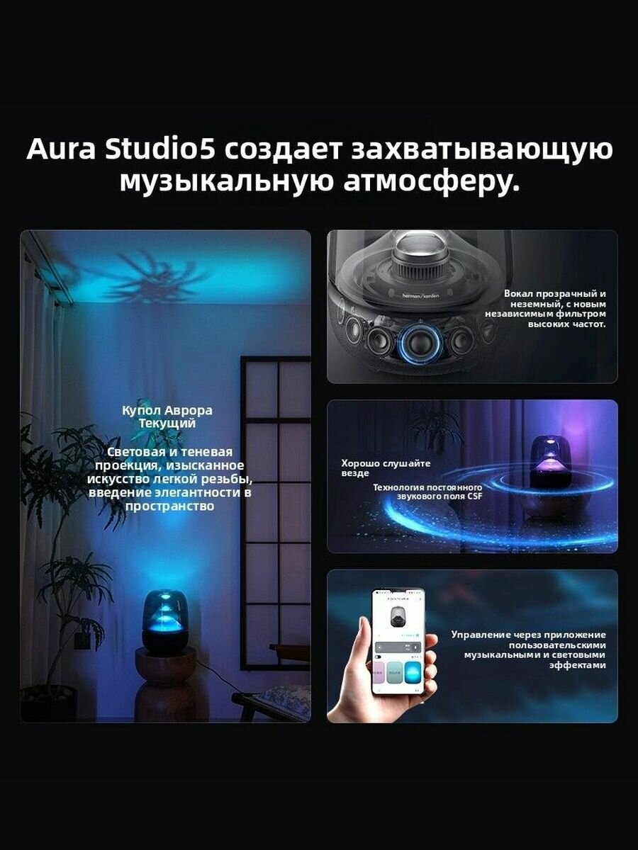 Купить Harman Kardon Aura Studio5 Беспроводная Bluetooth-колонка , домашний проекционный светильник, настольная аудиосистема с доставкой по всей России.