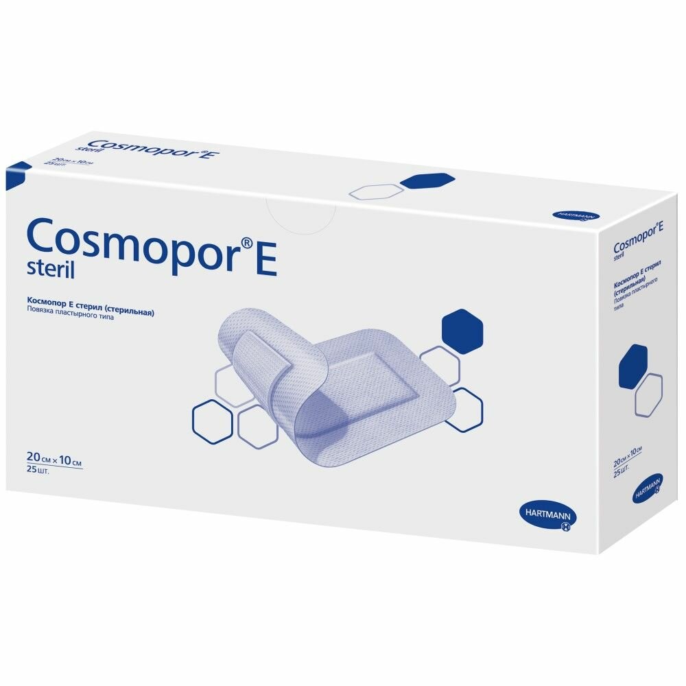 повязки пластырного типа стерильные COSMOPOR E STERIL/космопор Е стерил - стерильная самоклеящаяся повязка на рану из мягкого нетканого материала со специальной не приклеивающейся к ране впитывающей подушечкой.
