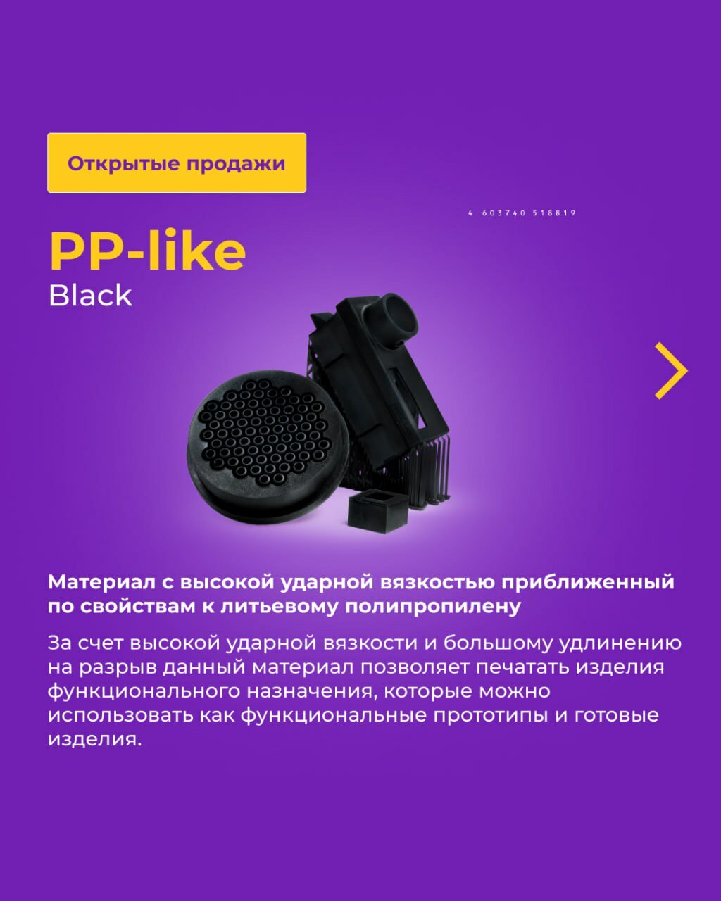 Предназначен для печати инженерных изделий, таких как ударопрочные корпуса, кронштейны, адаптеры. За счет высокой ударной вязкости и большому удлинению на разрыв данный материал позволяет печатать изделия функционального назначения. Напечатанные модели могут использоваться как функциональные прототипы и готовые изделия.
