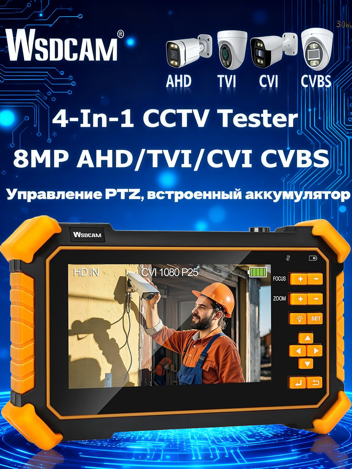 HD-2900 Тестер камер видеонаблюдения 8MP, 4-дюймовый экран, поддержка TVI/CVI/AHD, Coaxial Control, PTZ управление: сравнение цен, характеристики, фото, актуальное наличие и цены.