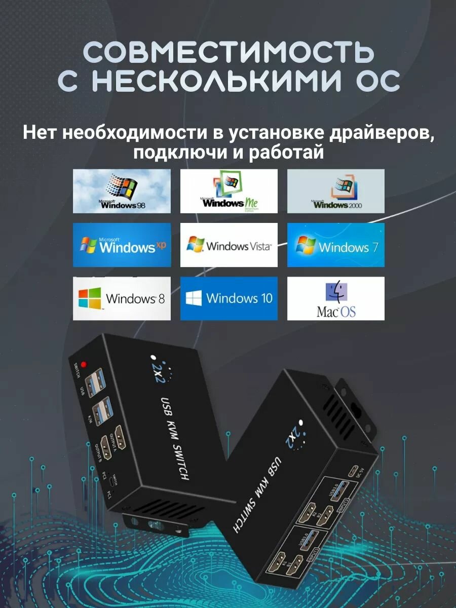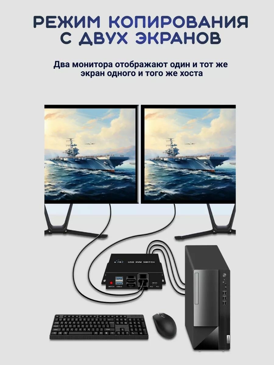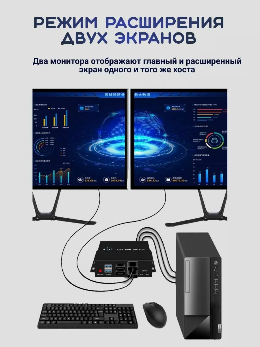 HDMI USB 3.0 KVM-переключатель 2-2 (два на два) 4K 60Hz с выносной кнопкой, переключением горячими клавишами и 2-я USB кабелями. Модель 2024 года: сравнение цен, характеристики, фото, актуальное наличие и цены.