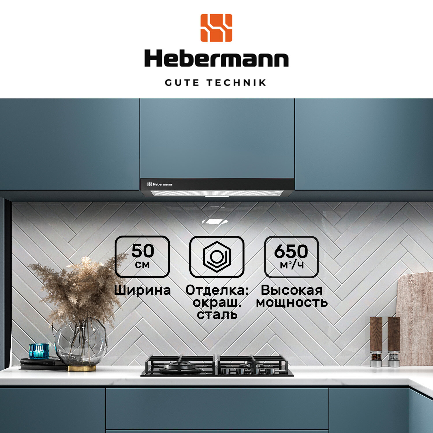 Кухонная вытяжка встраиваемая Hebermann HBFH 50.1 B; 50см, клавишное управление, отделка: окрашенная сталь, освещение: LED лампа: сравнение цен, характеристики, фото, актуальное наличие и цены.