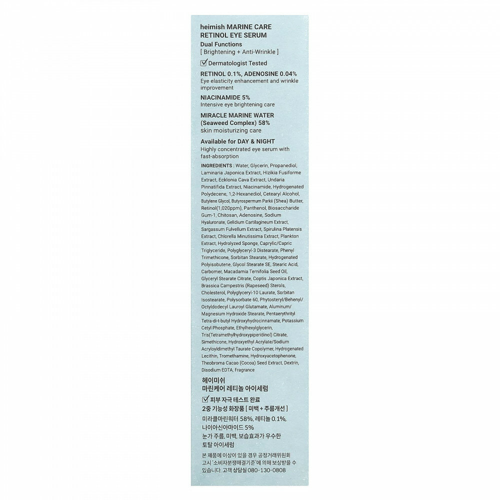 Heimish, Marine Care, сыворотка для кожи вокруг глаз с ретинолом 0,1%, 30 мл (1,01 жидк. унции): сравнение цен, характеристики, фото, актуальное наличие и цены.