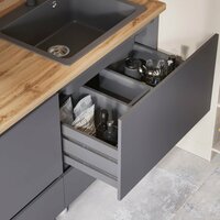 Размеры (ШхВхГ): 2000х2170х600 мм Корпус: ЛДСП, 16 мм Фасад: ЛДСП, 16 мм Кромка: 0,4х16 мм Задняя стенка: лхдф 3 мм, белый Столешница: ДСП 38 мм, дуб вотан Опора 100 мм, регулируемая: АВС-пластик, хром матовый Полкодержатель: Сталь, хром Направляющие шариковые: Сталь, хром Петля 4х-шарнирная, накладная: Сталь, хром Газлифт 80N: Сталь, хром Кухня "Хелен" - это сочетание функциональности и эстетики.