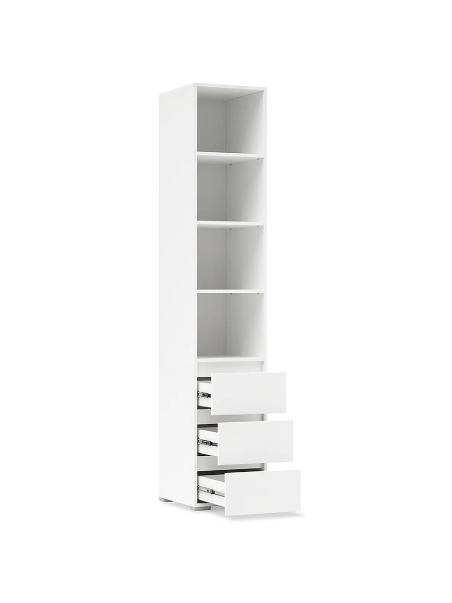 Особенностью пенала является его модульность, благодаря которой вы сможете легко и быстро собрать его в соответствии с вашими потребностями. В комплекте идут три полки и три ящика с шариковыми направляющими, что обеспечивает удобное хранение вещей.