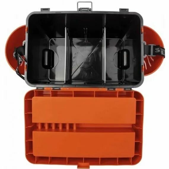 Функциональное основное отделение служит своеобразным каркасом, предотвращающим прогибы ящика и надежно удерживающим вес рыбака. Объем основного отделения (19 литров) позволяет разместить все необходимое: термос, еду, снасти. Съемные перегородки предназначены для более удобного хранения принадлежностей.