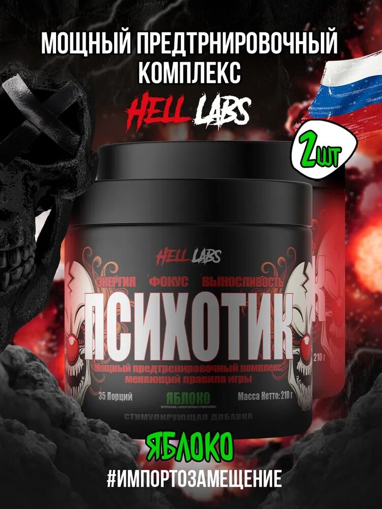 (2 Банки) Предтренировочный комплекс «Hell Labs Психотик», яблочный вкус, 210 гр, 35 порций: сравнение цен, характеристики, фото, актуальное наличие и цены.