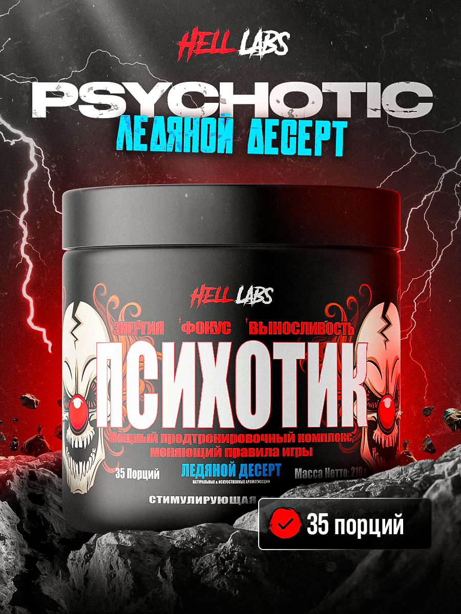 Купить Предтренировочный комплекс Hell Labs «Психотик», порошок, 210 г, 35 порций, ледяной десерт с доставкой по всей России.