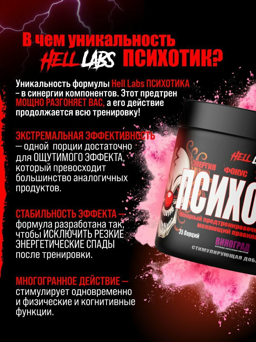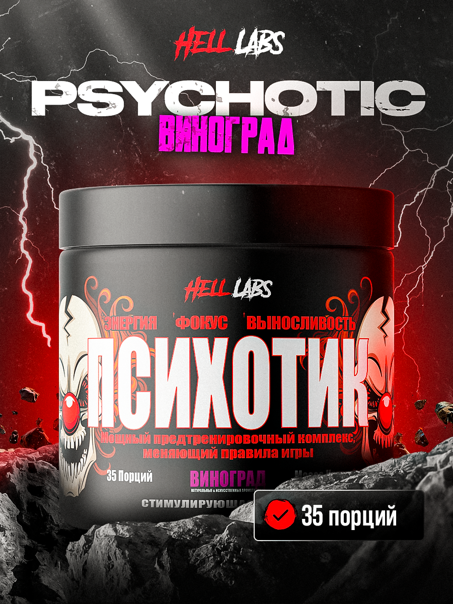 Купить Предтренировочный комплекс Hell Labs «Psychotic», виноград, 35 порций, 210г с доставкой по всей России.