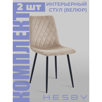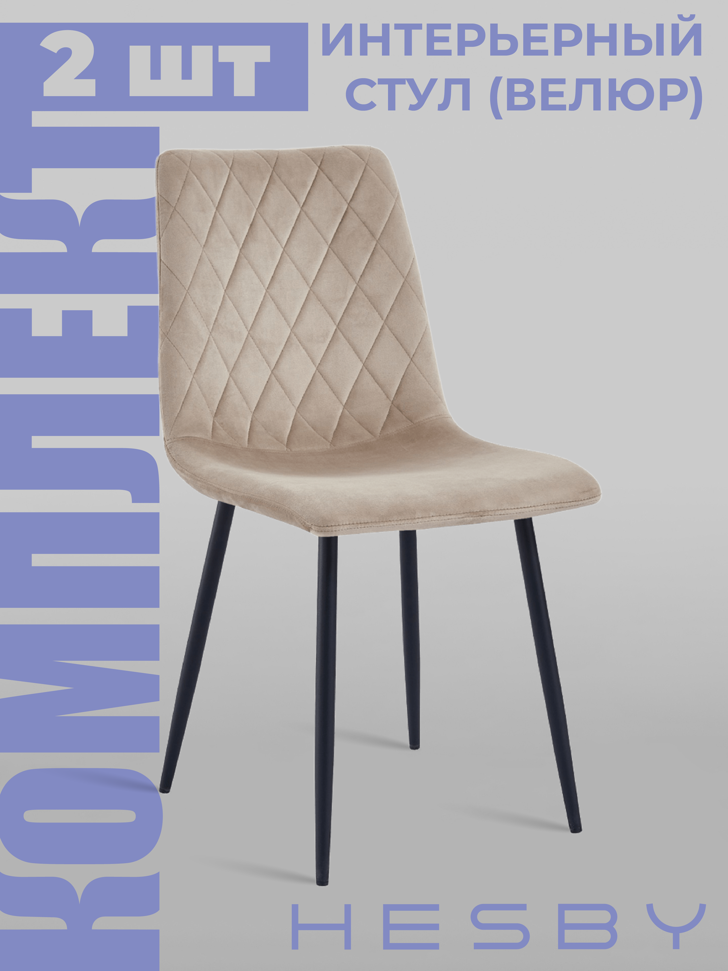 HESBY Комплект из 2 мягких стульев Serenity Whirl, бежевый велюр с черными металлическими ножками: сравнение цен, характеристики, фото, актуальное наличие и цены.