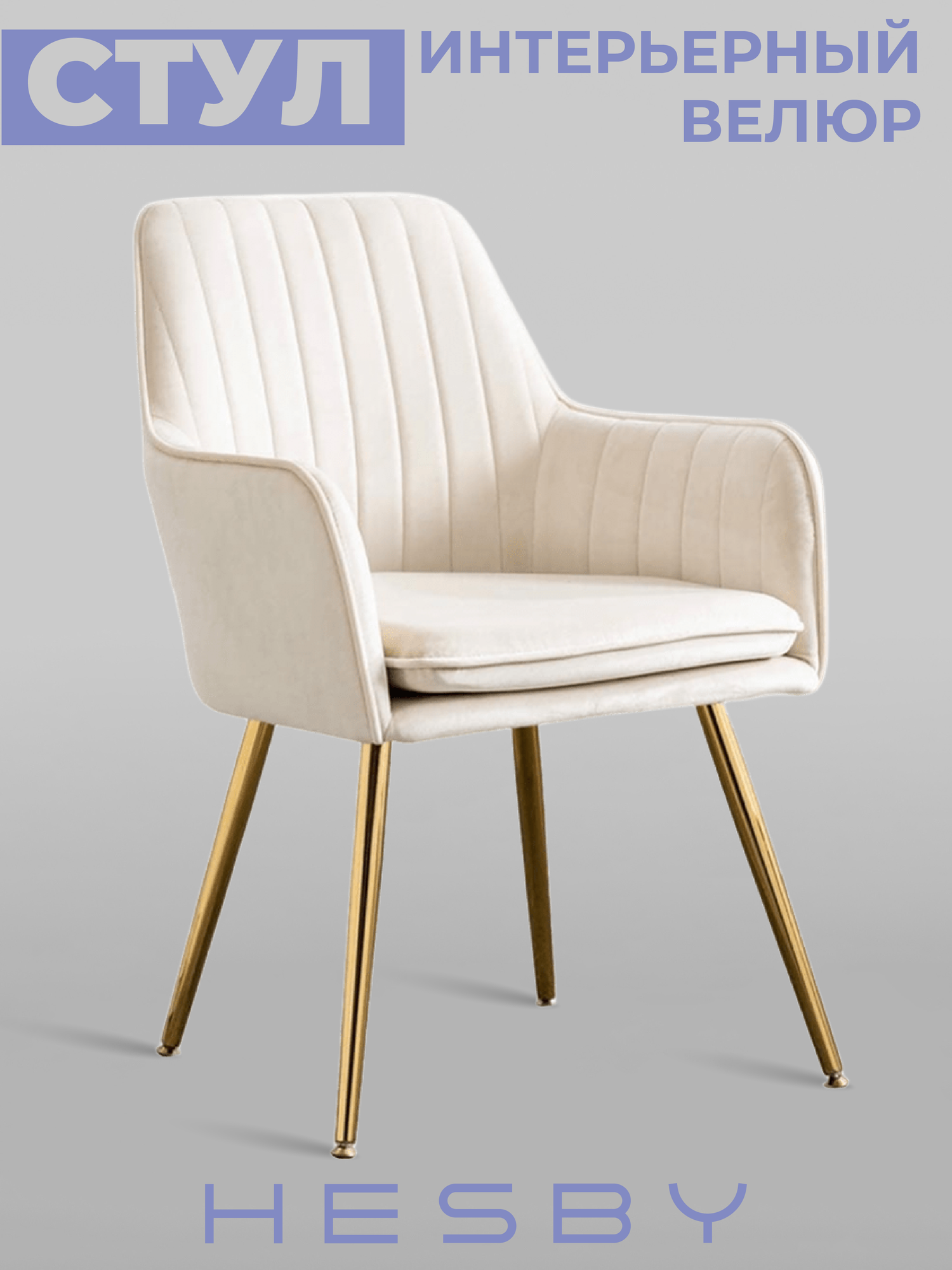 HESBY Мягкий стул-кресло Tranquil Synchrony с обивкой из велюра для современной кухни и гостиной, 88х59х50 см, бежевый с золотыми ножками: сравнение цен, характеристики, фото, актуальное наличие и цены.