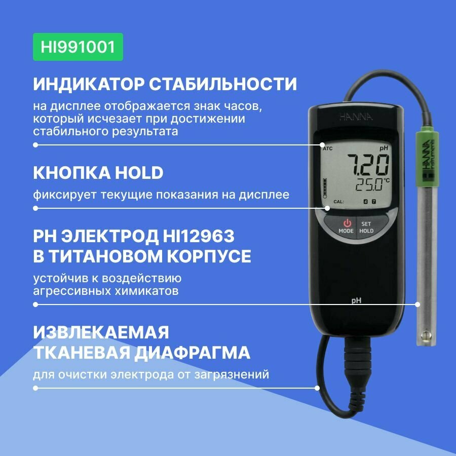 Купить HI991001 pH/t-метр влагозащищенный c автоматической калибровкой и автотермокомпенсацией с доставкой по всей России.