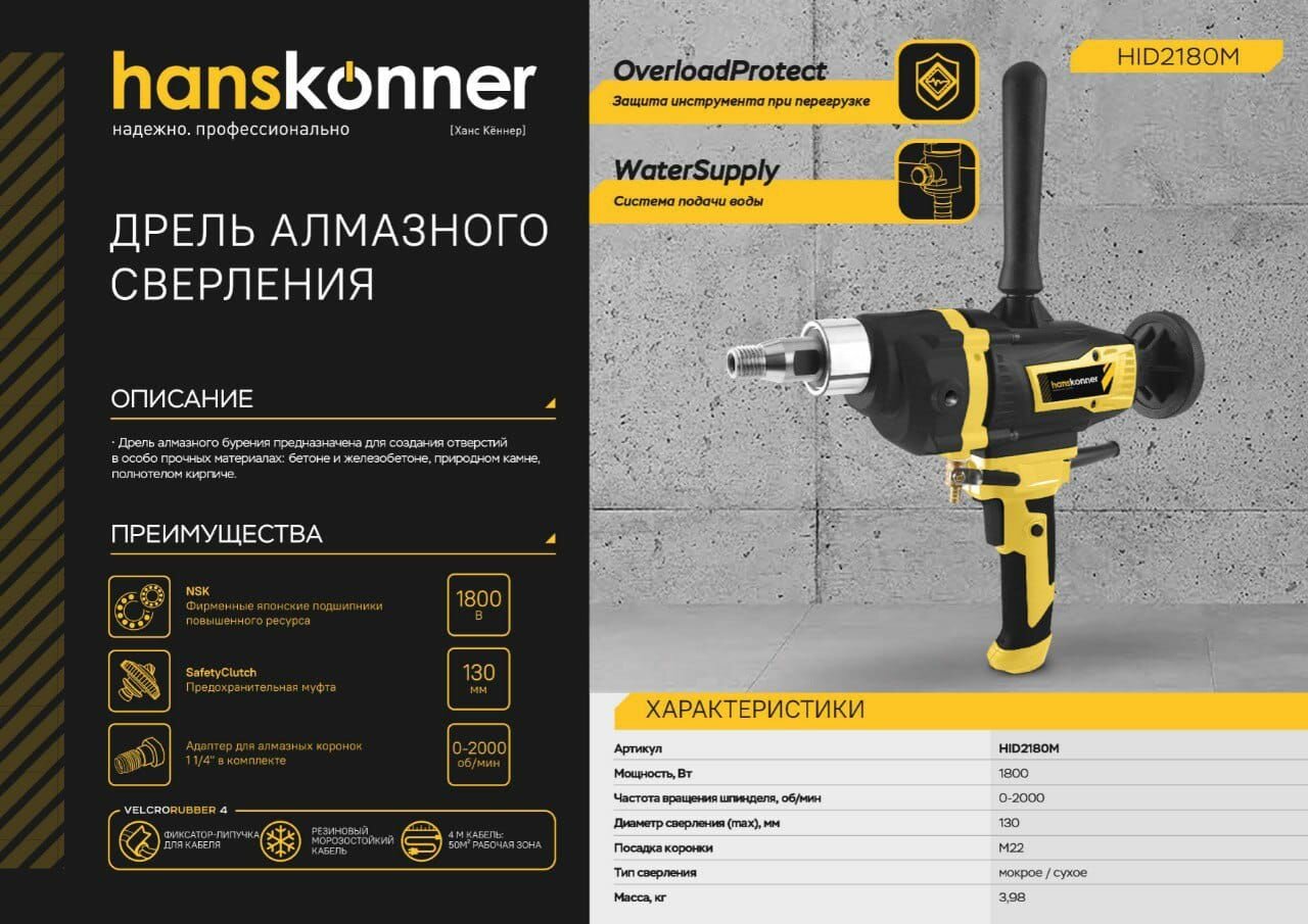 | Макс. диаметр сверления алмазной коронкой | 130 мм |