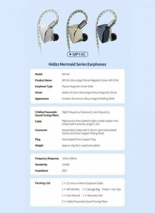 Внутриканальные наушники HIDIZS MP145 3.5mm (серый / HIDIZS MP145 3.5mm Silver): сравнение цен, характеристики, фото, актуальное наличие и цены.