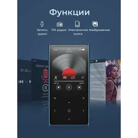Помимо аудиофайлов MP3-плеер поддерживает изображения, воспроизведение видео в формате AVI или AMV, а также электронные книги TXT. Bluetooth позволяет пользоваться беспроводными наушниками, что особенно удобно при занятиях спортом, связь остается стабильной на расстоянии до десяти метров.