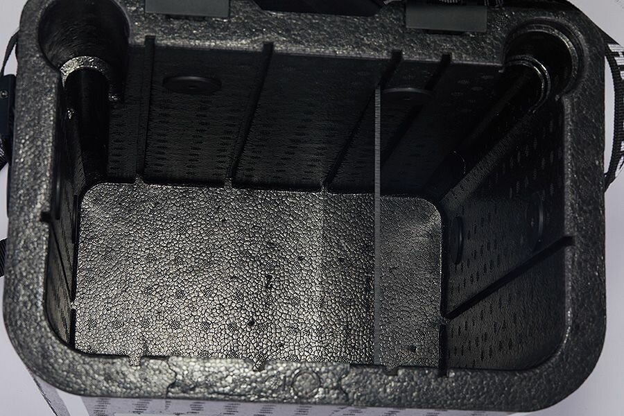 Материал- вспененный EPP полипропилен, оснащен плечевыми ремнями, что позволяет носить его как рюкзак на большие расстояния с легкостью при весе в 1 кг. Рыболовный зимний ящик HIGASHI Foam Ice Box F1 выдерживает нагрузки до 350 кг. Внутри есть перемещаемая перегородка, предоставляющая возможность создать два отделения для оптимального размещения снастей и снаряжения.