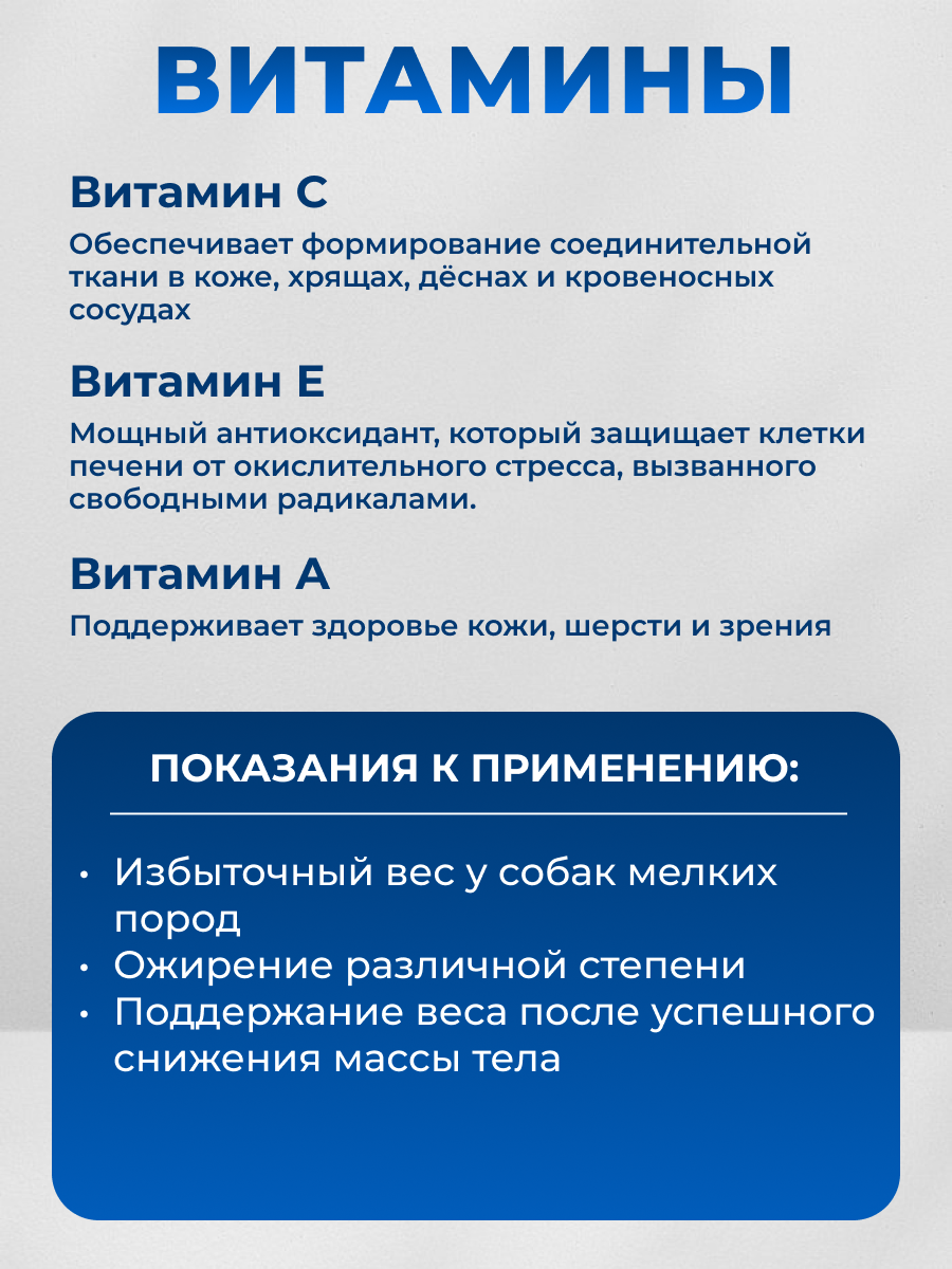 | Дополнительная информация | не рекомендуется для щенков, беременных или кормящих собак или собак старшего возраста; без искусственных ароматизаторов, красителей и консервантов |