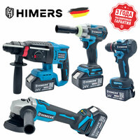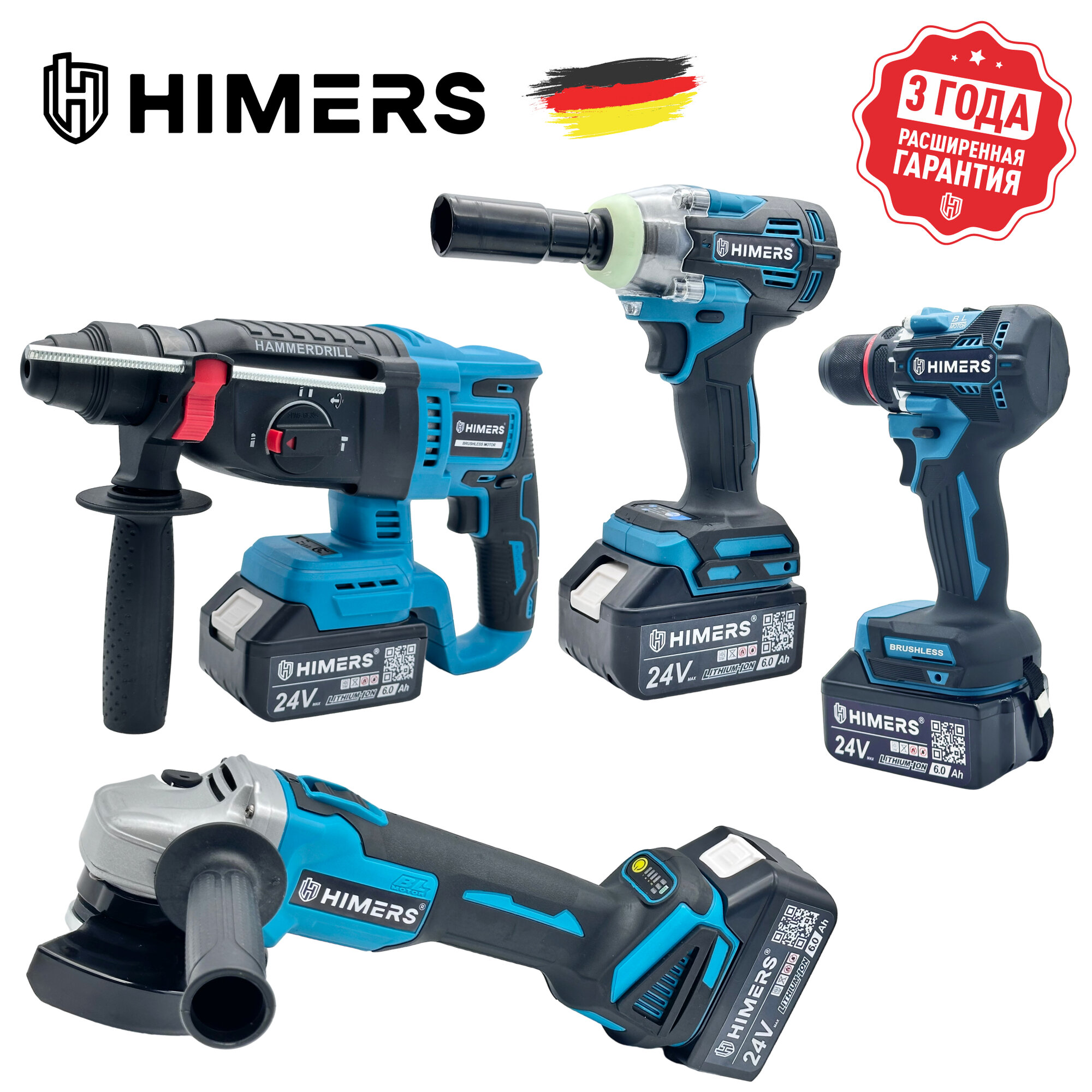 Купить HIMERS набор 4 в 1; Шуруповерт 80 н. м / Перфоратор 2.1Дж / УШМ 770Вт / Гайковерт 350Н. м; Аккумуляторный бесщеточный / 24V, 4 АКБ по 6 А. ч с кейсом и зарядной станцией с доставкой по всей России.