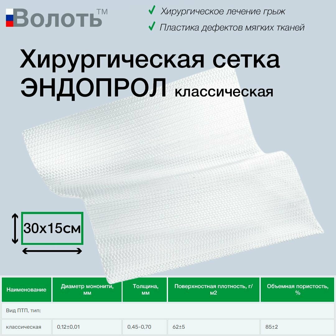 Купить Хирургическая сетка Волоть эндопрол классическая 30×15 см (Эндопротез-сетка полипропиленовая) для грыжи с доставкой по всей России. Хирургическая сетка Волоть эндопрол классическая 30×15 см (Эндопротез-сетка полипропиленовая) для грыжи: сравнение цен, характеристики, фото, актуальное наличие и цены.