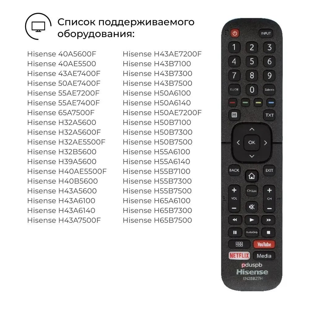 Внимание! Данный пульт EN2BB27H не универсальный. Он совместим только с телевизорами из списка поддерживаемого оборудования! Подробный список поддерживаемого оборудования смотрите в «Назначении». Для Вашего удобства мы также добавили инструкции по подборке пультов. Пожалуйста, ознакомьтесь с ними перед покупкой. Можете задавать вопросы, мы незамедлительно поможем подобрать пульт для Вашего ТВ.