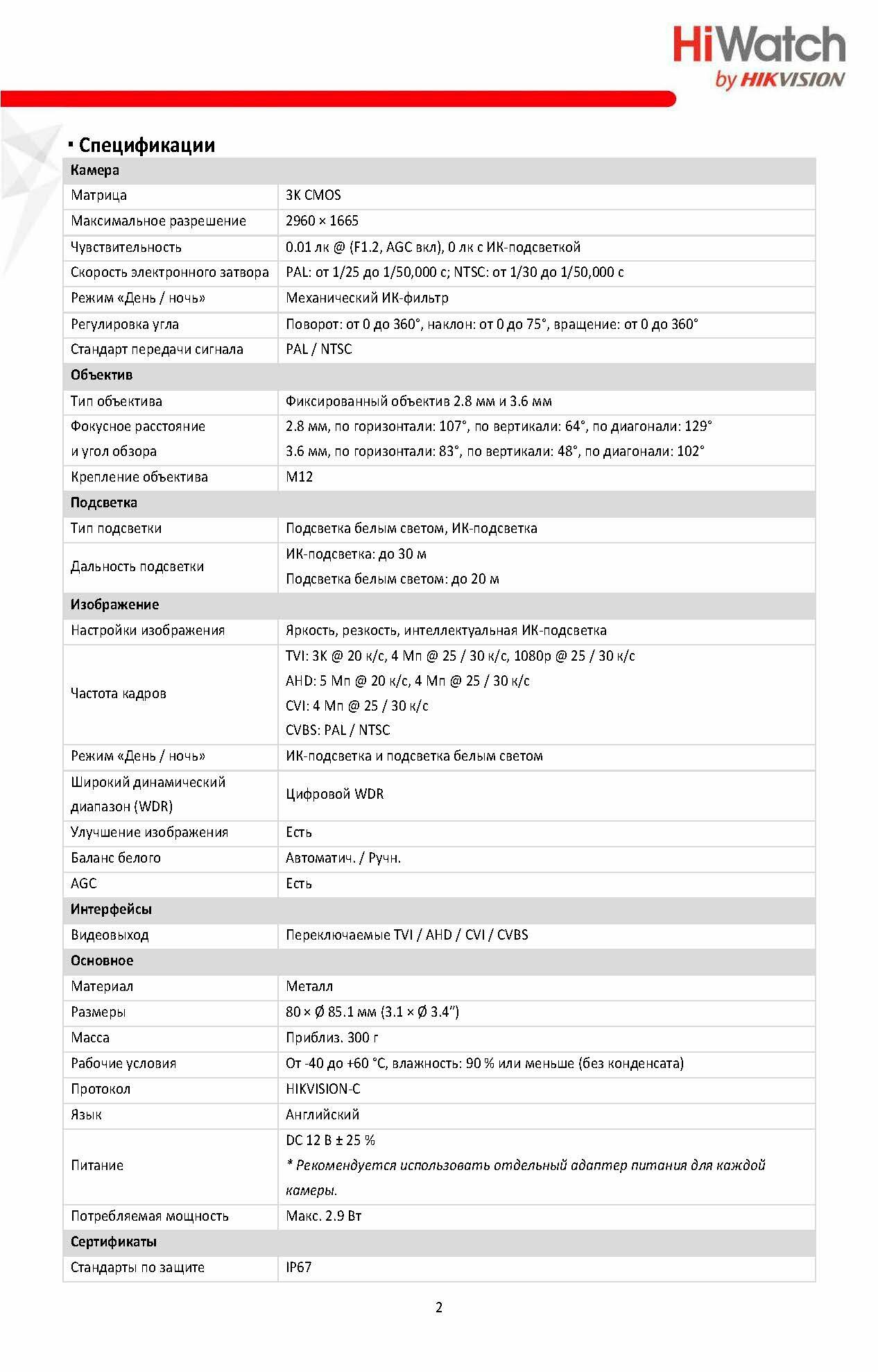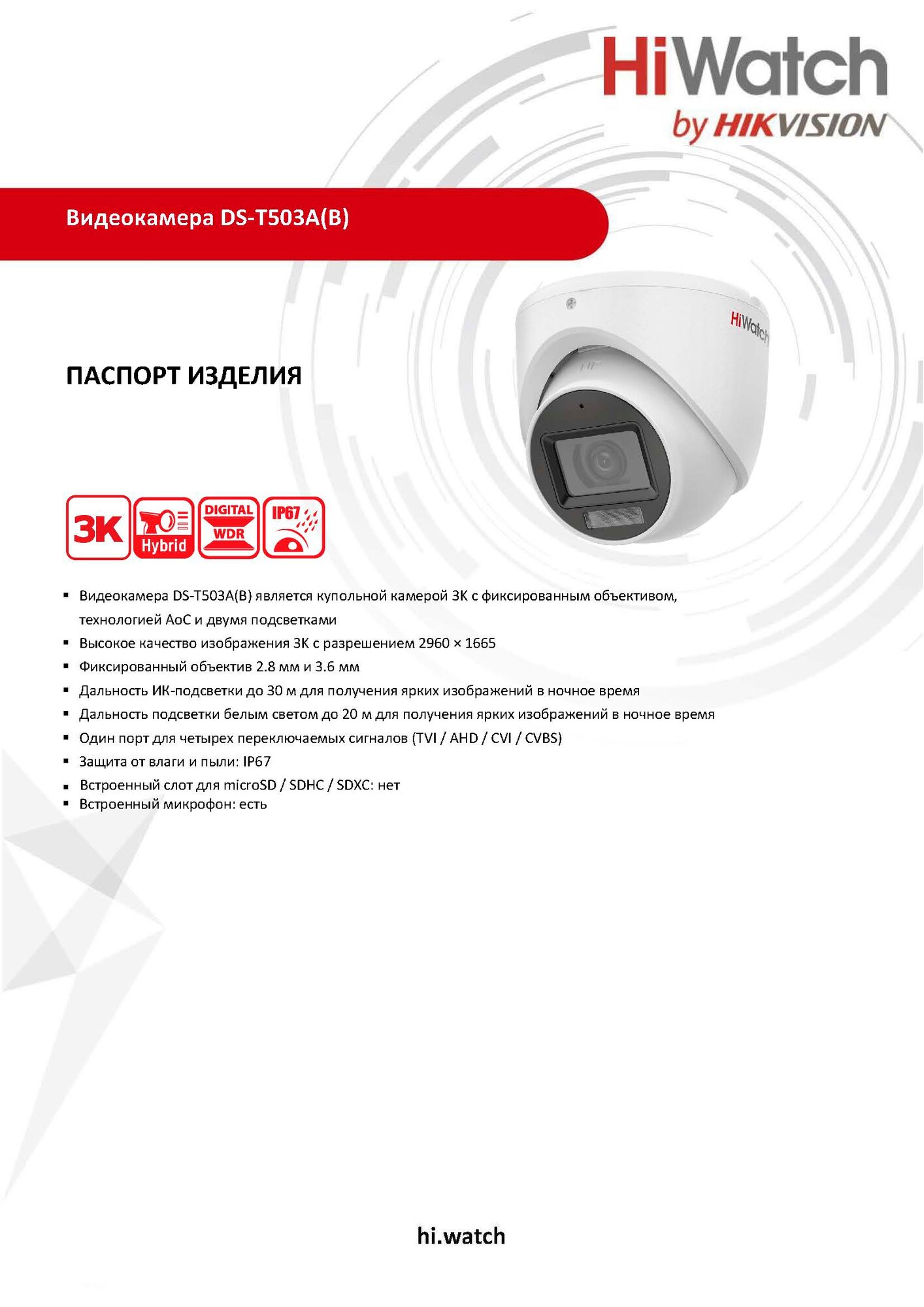 HiWatch DS-T503A(B) (2.8 mm) Купольная HD-TVI видеокамера 5МП 2592×1944 угол 129гр ИК-подсветка до 30м микрофон IP67: сравнение цен, характеристики, фото, актуальное наличие и цены.