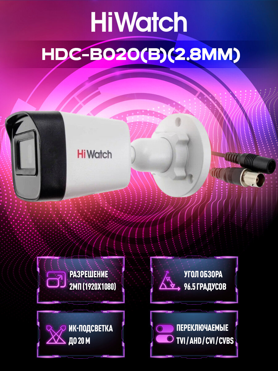 Купить HiWatch HDC-B020(B)(2.8mm) 2Мп уличная цилиндрическая HD-TVI камера с EXIR ИК-подсветкой до 20м с доставкой по всей России. HiWatch HDC-B020(B)(2.8mm) 2Мп уличная цилиндрическая HD-TVI камера с EXIR ИК-подсветкой до 20м: сравнение цен, характеристики, фото, актуальное наличие и цены.