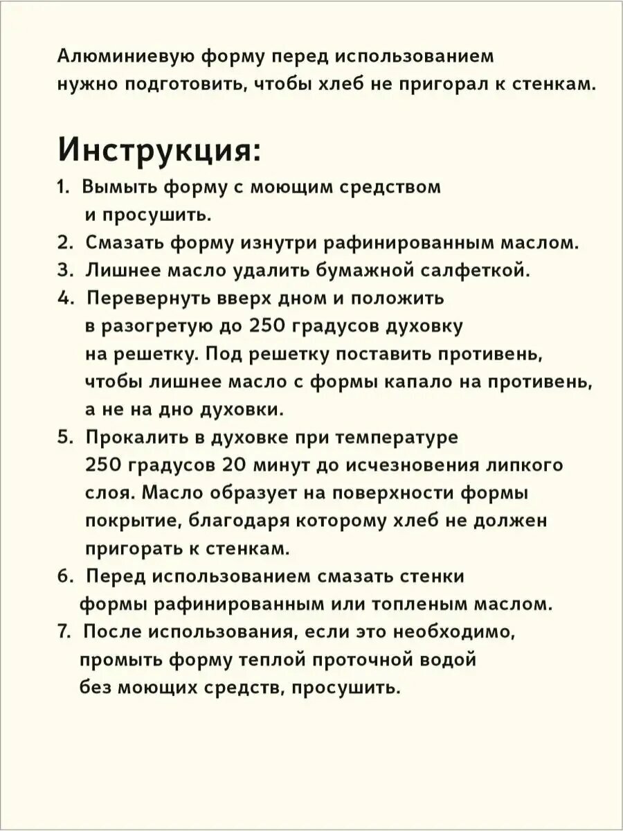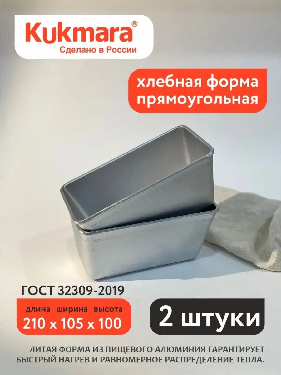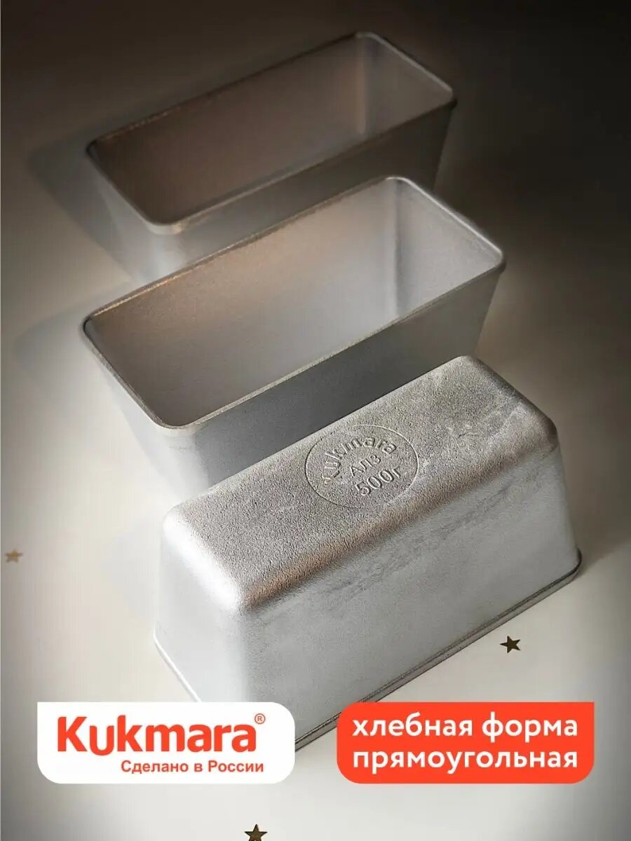 Форма для выпечки хлеба прямоугольная из литого алюминия х500. Это крепкое толстостенное изделие, которому не грозит деформация от жара в печи. Благодаря хорошей теплопроводности алюминия, форма хорошо прогреваются. Толщина стенок (6мм.) и массивное дно способствуют равномерному распределению тепла по всей поверхности хлебной формы. Она соответствует строгим европейским стандартам качества и имеет российские сертификаты. Форма подходит для печей и духовых шкафов любого типа. Алюминиевую форму перед использованием нужно подготовить, чтобы хлеб не пригорал к стенкам: вымыть, просушить, смазать рафинированным маслом и "обжечь" в духовке при температуре 250 градусов в течении 20 минут до исчезновения липкого слоя. Инструкция по "обжигу" на фото. Перед выпечкой, смазать формы маслом топленым, сливочным или растительным. Ржаной хлеб все же может приставать к форме. Если хлеб не вышел из формы сразу, оставьте его в форме на 20-30 мин, затем попробуйте снова. Можно поддеть края хлеба ножом. В нашем магазине Вы найдете и другие формы Kukmara: Л7, Л11, Л7 овальную, круглую, для батона, трех-секционные формы Л7 и Л11, формы для куличей ф140 и ф160. Форма для хлеба, форма кукмара, форма хлебная, форма для выпечки, форма Kukmara станет прекрасным подарком для бабушки, мамы, сестры на новый год, 8 марта, день матери, день рождения! В нашем магазине также представлена органическая Шугуровская мука: цельнозерновая пшеничная и ржаная, пшеничная первый сорт и высший сорт, отруби пшеничные из Шугуровского зерна, био-зерно для проращивания. Наберите в поиске Шугуровхлеб. Желаем приятных покупок!