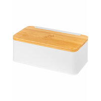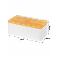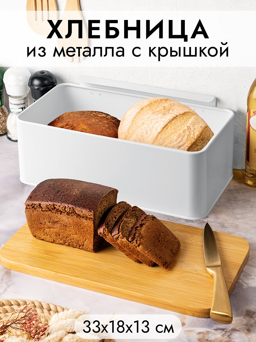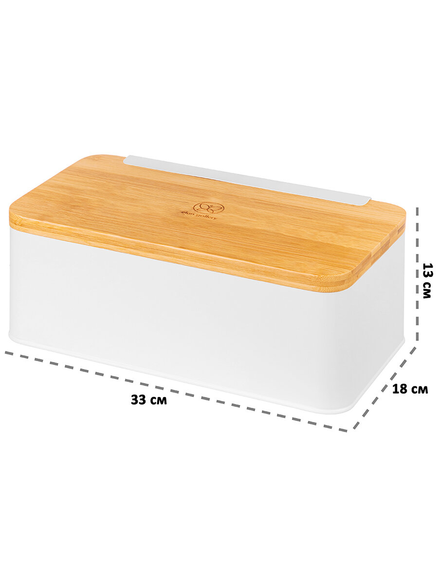 Белая хлебница 33х13х18 см с бамбуковой крышкой-доской поможет сохранить хлеб и булочки вкусными и свежими. Хлебница из металла не впитывает запахи, держит температуру, предотвращает попадание влаги, а значит – защитит продукты от плесени. Настольная хлебница имеет стильный дизайн и надежно закрывается бамбуковой крышкой. Её особенность – необычный функционал 2 в 1. Вам больше не понадобится отдельная доска для того, чтобы нарезать хлеб перед подачей на стол. Просто откройте крышку и используйте её как доску. Ёмкость можно приспособить не только под хлеб, но и для хранения пакетов с крекерами, печеньем, сухарями. Бамбуковые детали нельзя замачивать. Поставляется в стильной картонной упаковке. Металлическая хлебница подойдёт в подарок любой хозяйке. Такая посуда станет настоящим украшением вашей кухни и поможет создать в доме порядок и уют!