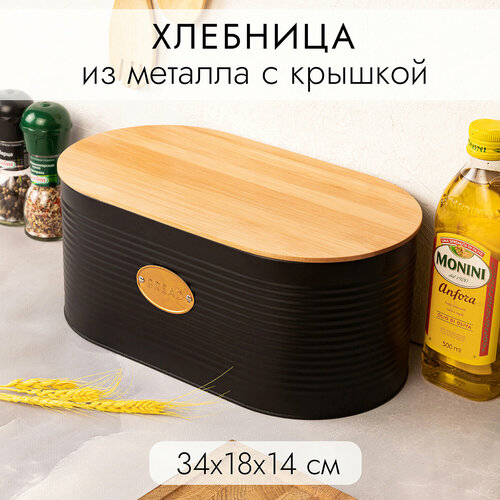 Купить Хлебница 34*18*14 см Elan Gallery «Черная», металлическая, с бамбуковой крышкой с доставкой по всей России.