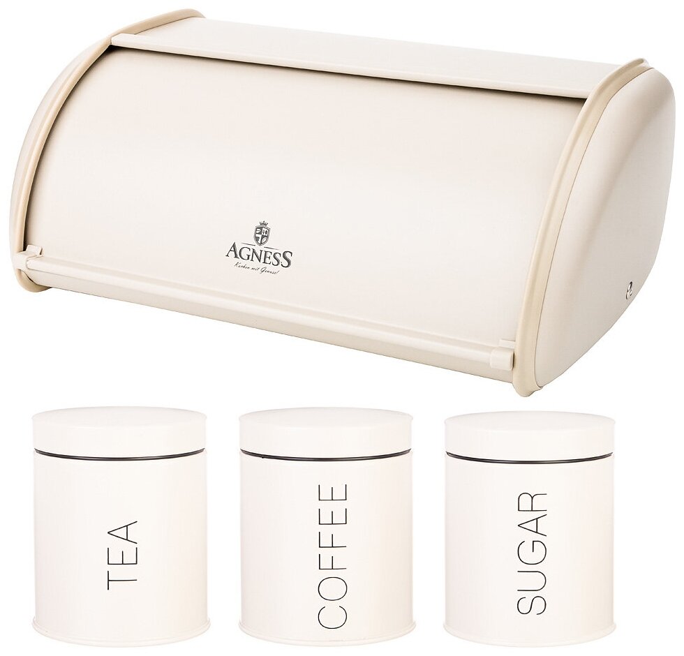 Хлебница AGNESS металлическая, 35,5Х23Х14,5СМ С 3-МЯ банками для сыпуч. Прод. D=10 СМ, ВЫС=12 СМ: сравнение цен, характеристики, фото, актуальное наличие и цены.