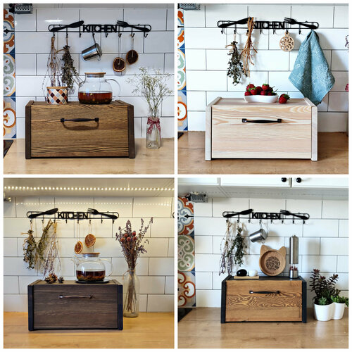 40см.*24см*19см. Хлебница в стиле Лофт из Лиственницы, такая же крепкая как дуб, влагостойкая. Покрыта натуральным маслом на основе льняного, подчеркивает рисунок дерева. Ручка металлическая. Оптимальный размер хлебницы. Мягкие, противоскользящие ножки, не царапают столешницу. Натуральное дерево не нуждается в рекламе, естественная красота природного материала, надёжная конструкция. Подарок природы для домашнего уюта. Нужна ли Хлебница в доме! Ответим статистикой: Больше всего хлеба едят в Ингушетии - 187,9 кг. в год на человека или немногим больше 0,5 кг хлеба в день, Меньше всего хлебушка едят в Мурманской области — 71,5 кг. хлеба в год на человека, например в Санкт-Петербурге — 76,1 кг, а в Москве - 81,6 кг. В мире ежедневно съедается более 9 млн буханок хлеба. У многих народов до сих пор сохранилось правило, съедать все до последней крошки. Хлеб нельзя выбрасывать, даже зачерствелый. Это дань уважения к труду людей, вырастивших урожай и испекших хлеб. У славянских народов считается, что люди, разделившие между собой краюху хлеба, становятся друзьями навсегда. На Руси присутствие хлеб на столе считается признаком гостеприимства. Перед началом трапезы хлеб делили между всеми присутствующими за столом. В Росси почетных гостей всегда встречают караваем с солью. Раньше такой каравай надо было поцеловать в знак уважения к хозяину. В нынешнее время традиция чуть изменилась. Нужно отломить кусочек хлеба, обмакнуть его в соль и съесть. Хлеб был и всегда будет национальным богатством, содержащим в себе огромный смысл труда целого народа. Поэтому детей с малолетства учат бережному отношению к хлебу. Для такого почетного продукта нужно и почетное место для хранения- хлебница! с Ув. столярная Дружина Tumba.