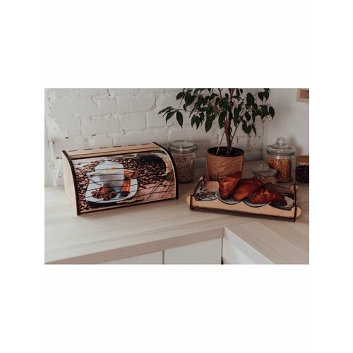 Хлебница "Кофе" с подносом из березы - стильные и функциональные аксессуары для вашей кухни.