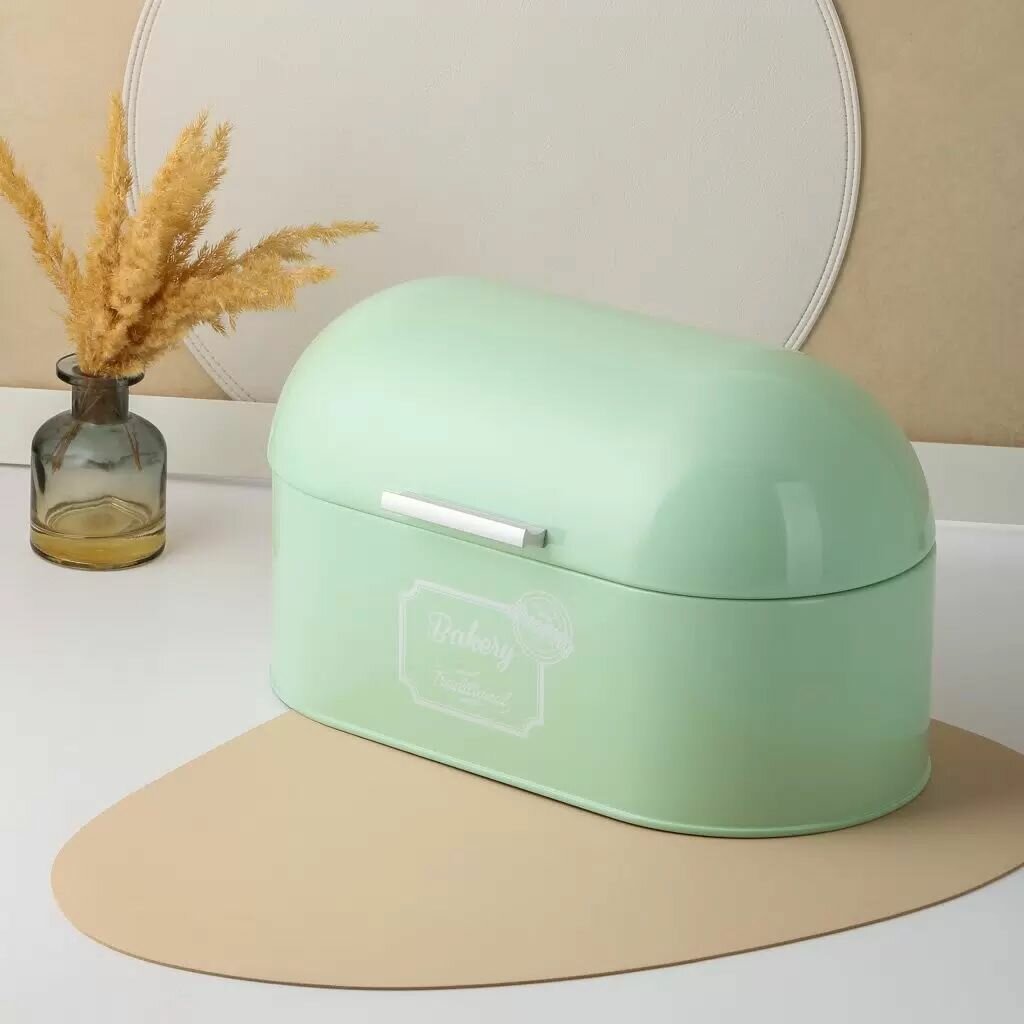 Эта красивая посуда для дома преобразит ваше пространство благодаря утончённому дизайну. Посуда из металла всегда смотрится стильно, а с этой привлекательной мятной хлебницей кухня станет еще уютнее.