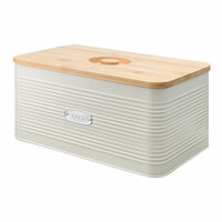 - Хлебница выполнена из углеродистой стали с износостойким порошковым покрытием, что гарантирует ей устойчивость к коррозии, повреждениям и износу. - Крышка из бамбука привносит в дизайн природную элегантность, препятствует попаданию внутрь пыли и влаги, а также может использоваться в качестве разделочной доски. - На корпусе предусмотрены вентиляционные отверстия для предотвращения отсыревания продуктов и появления плесени. - Небольшие размеры обеспечивают компактное размещение.