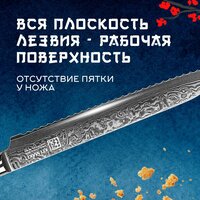 • Особенности: премиальный нож, профессиональный кухонный нож, дамасская сталь, 67 слоев оковки, сердечник из высокоуглеродистой стали марки VG-10, эксклюзивный и стильный внешний вид, острый нож, высокая степень твердости, сталь марки 316, цельнометаллический нож, долго держит заточку, антибактериальное покрытие, полный хвостовик, цельный хвостовик, фултанг, оптимальный баланс, высококачественная сталь, рукоять из перламутра, острое лезвие, качественные материалы, инструкция на русском языке