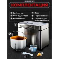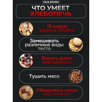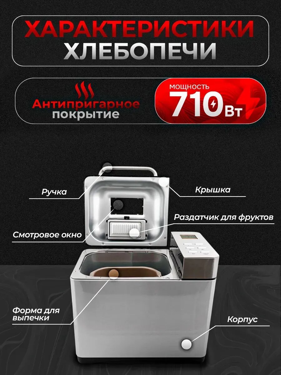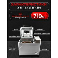 | Дополнительная информация | микрокомпьютерное управление, lcd-дисплей, двутрубная система нагрева, 3d выпечка 360°, алюминиевое ведро с тефлоновым антипригарным покрытием, современный корпус из нержавеющей стали, питание 220–240 в 50–60 гц, комплект: ведро для хлеба, мерный стакан, ложка, крючок, лопатка |