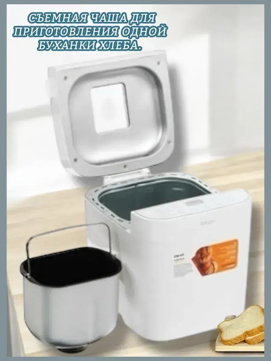 Хлебопечь DEXP DBM-550P выполнена в белом пластиковом корпусе с кнопочной панелью управления и дисплеем. Набор индикаторов оповещает о включении, выбранной программе и цвете корочки, весе выпечки и оставшемся времени на приготовление. Смотровое окно позволяет контролировать за процессом готовки, не отключая устройство. В комплекте есть мерный стакан и ложка для точного соблюдения рецептуры, лопасть для замеса теста и крюк для ее аккуратного извлечения. DEXP DBM-550P способна запоминать выбранную программу в течение 10 минут после отключения света. Поэтому кратковременные сбои в электросети не влияют на работу устройства. Для точного контроля за процессом выпечки есть функции паузы и добавления ингредиентов по звуковому сигналу. Вы можете загружать продукты и включать отсрочку старта до 13 ч для приготовления свежего хлеба к заданному времени. Функция автоподогрева сохраняет выпечку горячей в течение часа.