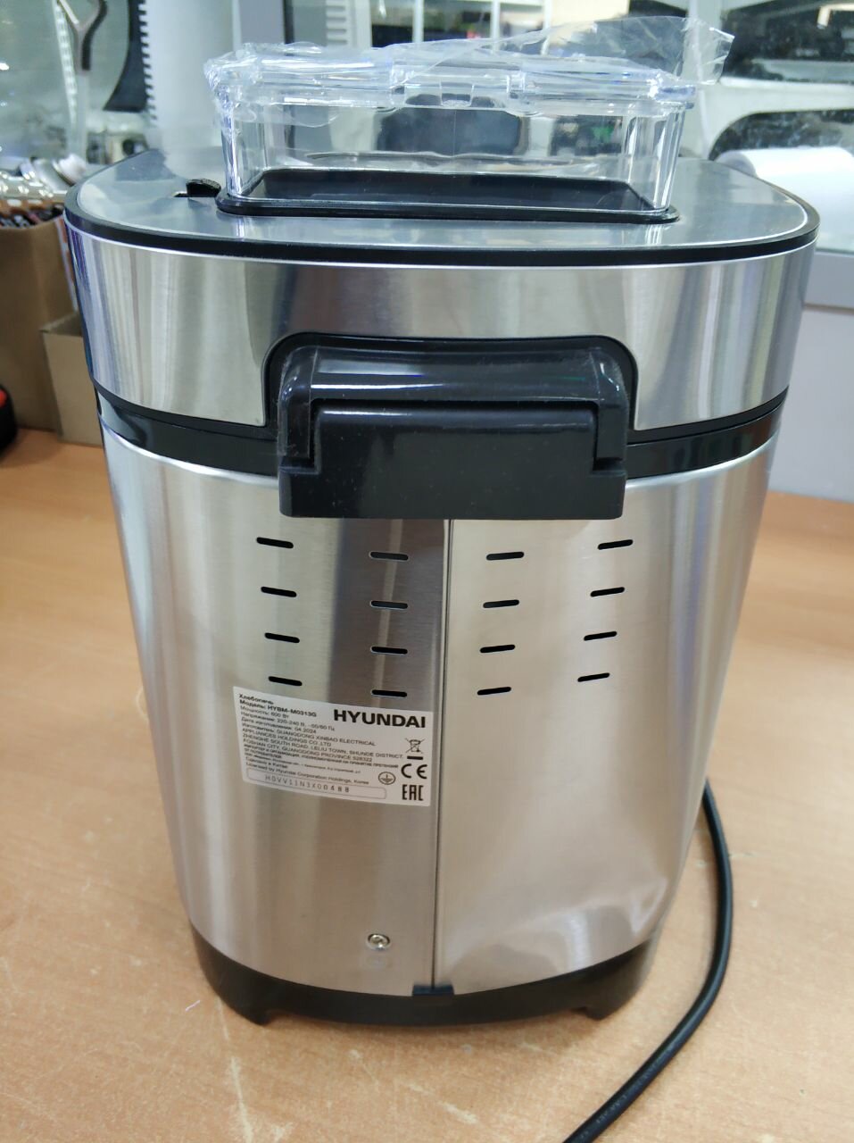 3754. Хлебопечь Hyundai HYBM-M0313G (серебристый/чёрный) — идеальный выбор для домашнего использования. Из-за небольшой вмятины на задней стенке прибор продаётся по сниженной цене. В остальном работает исправно.