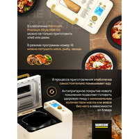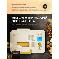 В комплектацию входит инструкция с подробными рецептами приготовления вкусного хлеба и прочей выпечки из разных ингредиентов. Специально предусмотренный автоматический диспенсер для орехов, семян, фруктов и т. д. поможет придать особенный, неповторимый вкус.