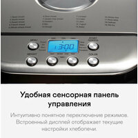 Купить Хлебопечка автоматическая с замесом теста 600 Вт, масса хлеба 1000 г, 19 программ, корпус из нержавеющей стали с доставкой по всей России.