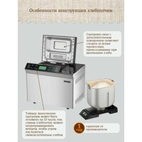 программы: варенье, максимальный вес выпечки: 1200 г, мощность: 615 Вт, количество программ выпечки: 12, материал корпуса: пластик