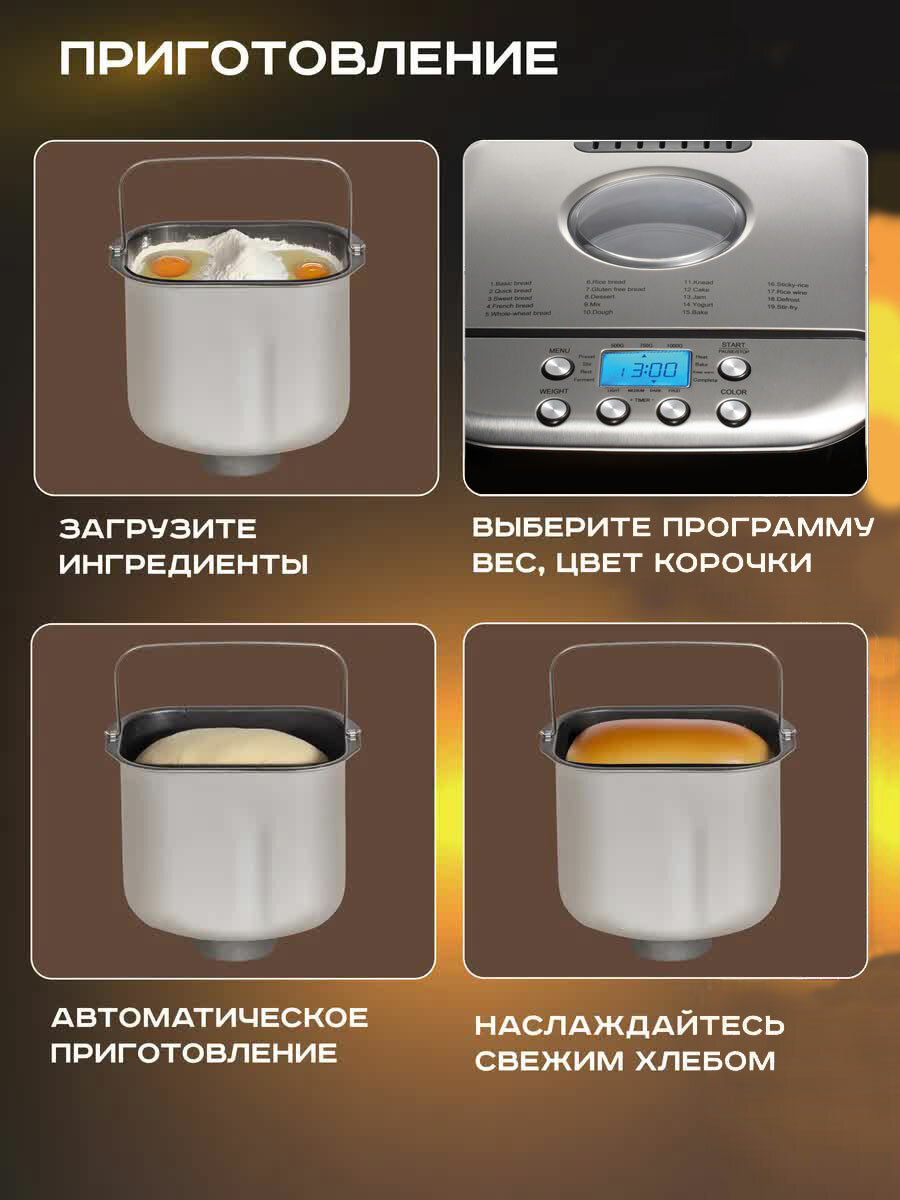 Хлебопечка с замесом теста автоматическая с 19 программами, отложенным стартом и функцией поддержания тепла: сравнение цен, характеристики, фото, актуальное наличие и цены.