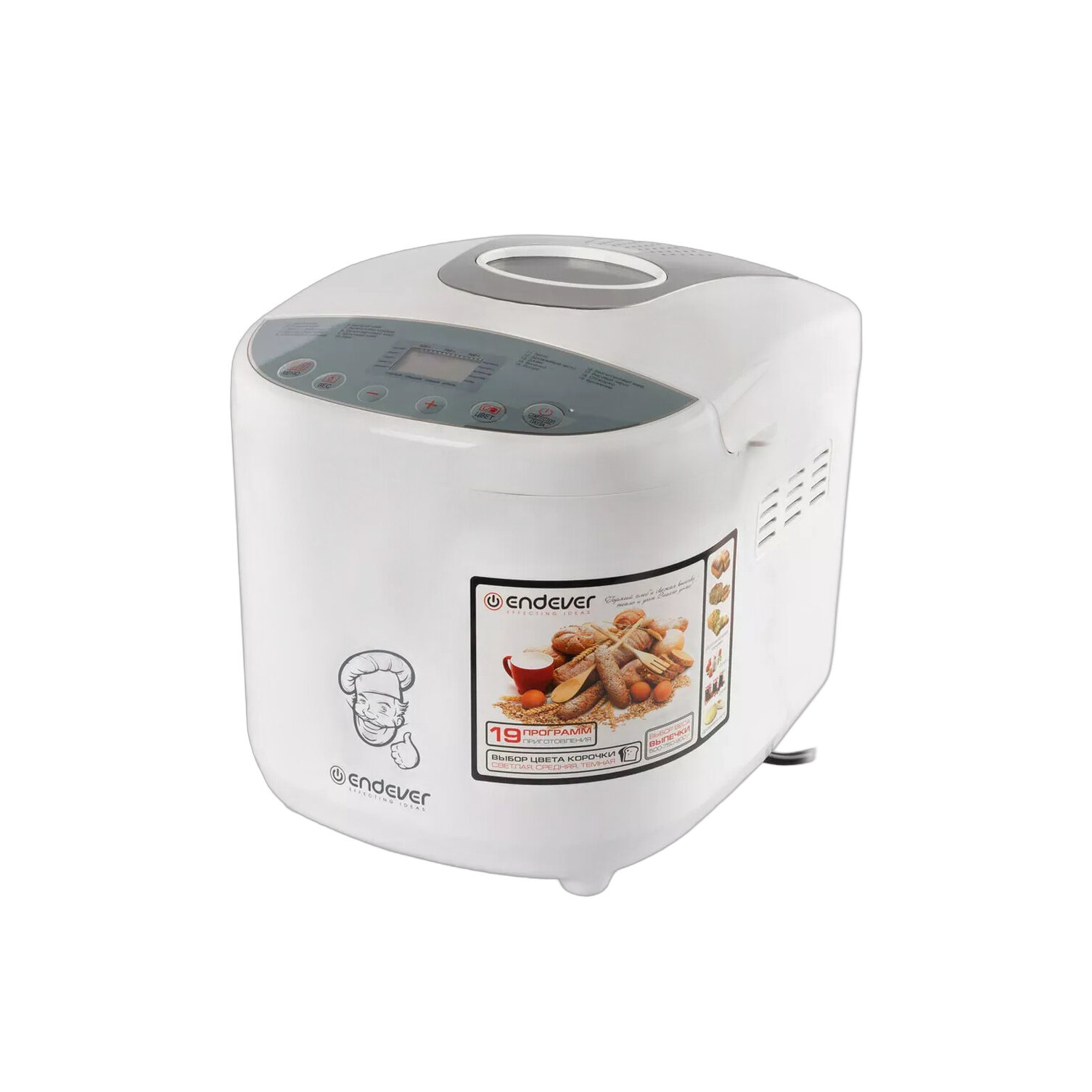 Подкатегория: Хлебопечи Страна производства: Китай Вес с упаковкой (кг): 5.2 кг Комплектация: документация, хлебопечка, мерный стакан, Лопасть для замешивания теста, мерная ложка, Крюк для извлечения Цвет: белый Мощность устройства (Вт): 650 Вт Модель: Skyline MB-51 Высота предмета: 36 см Ширина предмета: 30 см Тип управления: механическое; электронное Глубина предмета: 30 см Внутреннее покрытие: антипригарное Количество программ (общее): 19 шт. Форма выпечки: буханка Максимальный вес выпечки: 900 г Программы хлебопечи: йогурт; безглютеновая выпечка; дрожжевое тесто; кекс Доп. опции хлебопечи: защита от перегрева Количество программ замеса теста: 2 шт. Максимальное время установки таймера: 15 часов Бренд: Endever Мощность (Вт): 650 Вес выпечки (г): 500/750/900 Таймер (отложенный старт): до 15 часов Автоподогрев: 60 мин. Габаритные размеры: 36*30*30 Цвет: белый/серый Вес изделия (кг): 4,4 Индикация режима работы текущей программы Индикация этапов программы Индикация времени до конца программы Функция защиты от перегрева Программы: Белый хлеб Сладкий хлеб Хлеб на закваске Французский хлеб Цельнозерновой хлеб Быстрый хлеб Выпечка без сахара Мультизерновой хлеб Молочный хлеб Кекс Тесто Дрожжевое тесто Джем Выпечка Йогурт Безглютеновый хлеб Рисовый пирог Обжарка Брожение Комплект поставки: Антипригарная ёмкость для выпечки Мерный стакан Мерная ложка Лопасть для замешивания теста Крюк для извлечения лопасти Руководство по эксплуатации Гарантийный талон