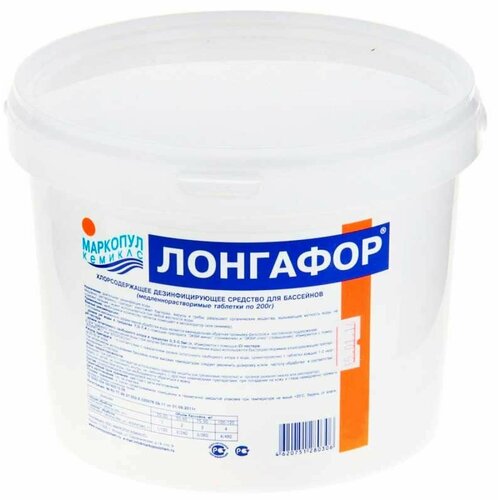 Купить Хлор медленный для бассейна Лонгафор 90% таблетки (по 200 г) 5 кг Маркопул Кемиклс — Химия для дезинфекции и очистки воды бассейна / Средство для ухода за водой «Маркопул» с доставкой по всей России.