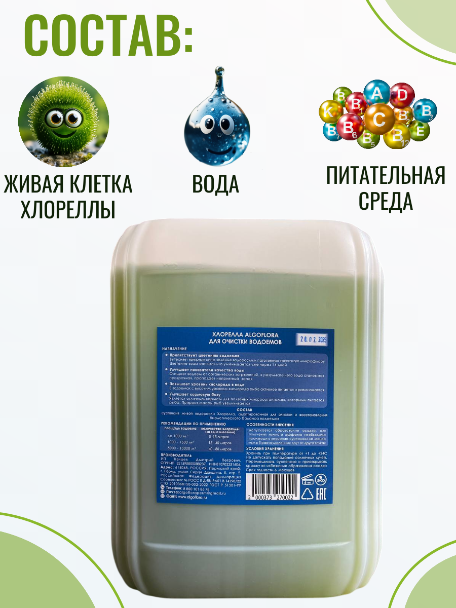 Купить Хлорелла для биологической очистки прудов и водоемов 10 литров суспензия с доставкой по всей России. Хлорелла для биологической очистки прудов и водоемов 10 литров суспензия: сравнение цен, характеристики, фото, актуальное наличие и цены.