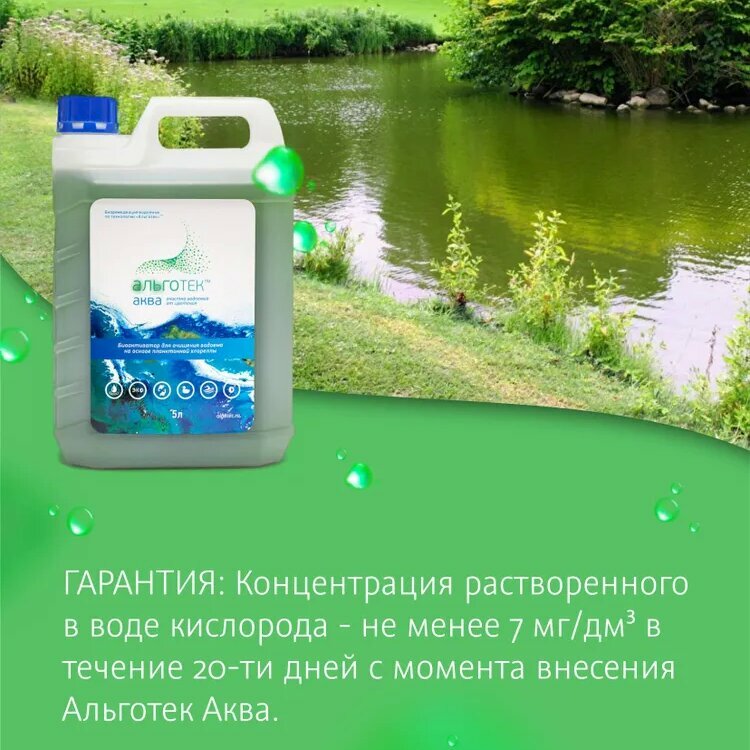 С момента внесения Альготек аква - концентрация растворенного в воде кислорода - не менее 7 мг/дм3 в течение 20-ти дней.