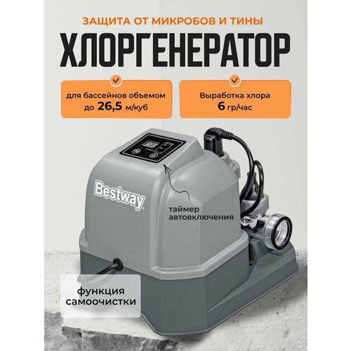 Хлорогенератор Bestway «Hydrogenic 6 G/H Saltwater Chlorinator» для бассейна, с системой морской воды, хлор 6 г/ч, 58678: сравнение цен, характеристики, фото, актуальное наличие и цены.