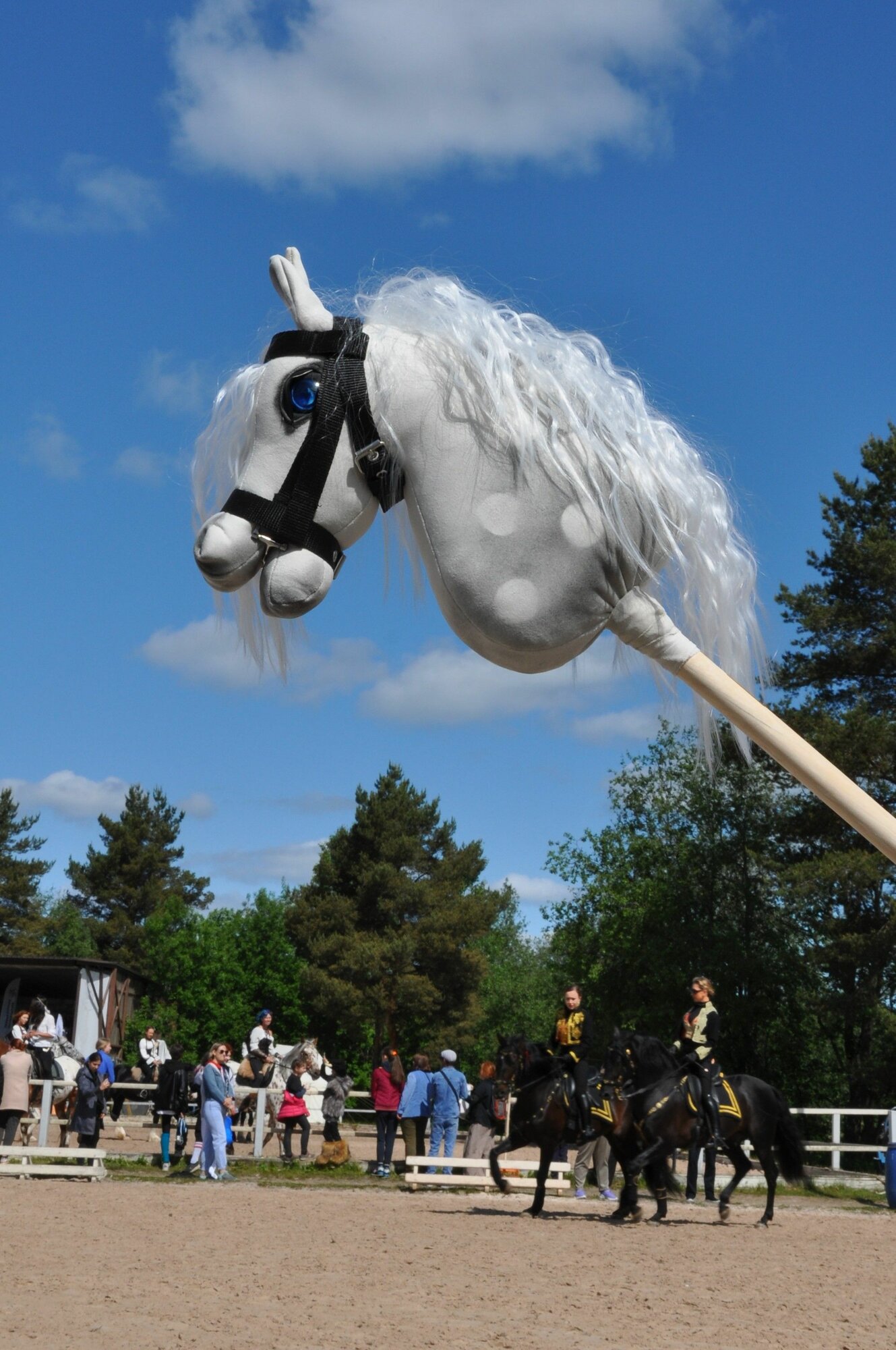 Мягкая детская игрушка в виде лошади. Рот открывается .Подходит для участия в соревнованиях по Хоббихорсингу. Палка выполнена из натурального дерева Бук, отшлифована и обработана для безопасности детских рук.