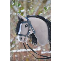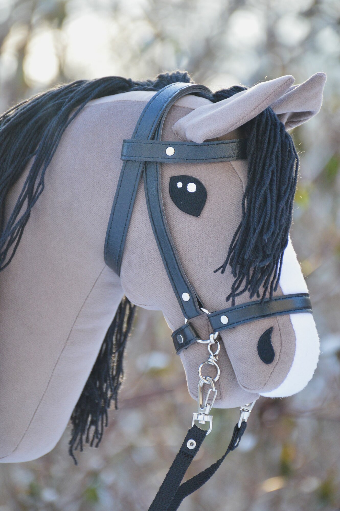 Хоббихорс (лошадка на палке) с уздечкой, новогодней попоной и ушками. Изготовлен в мастерской Hobbyhorseshop.
