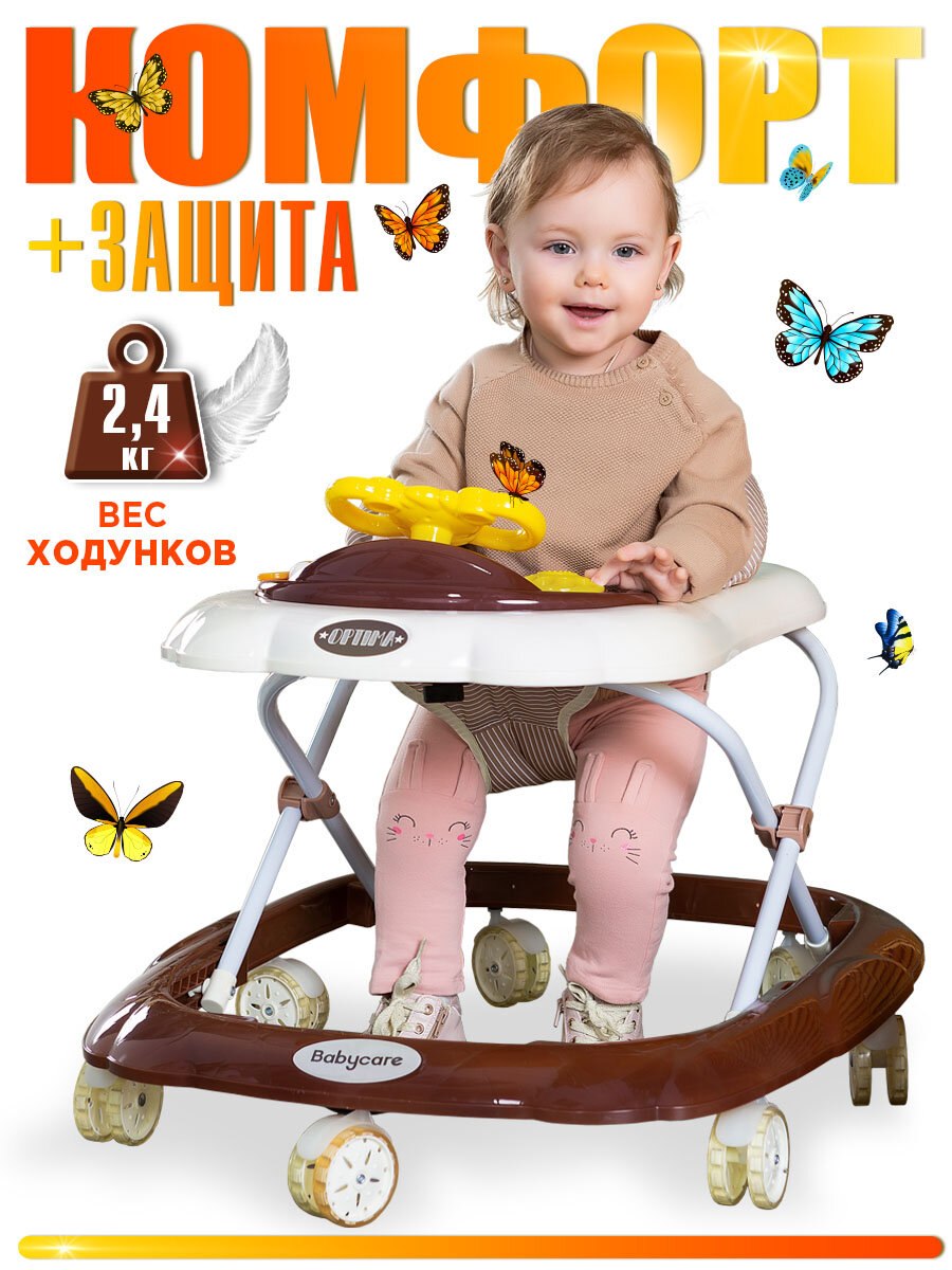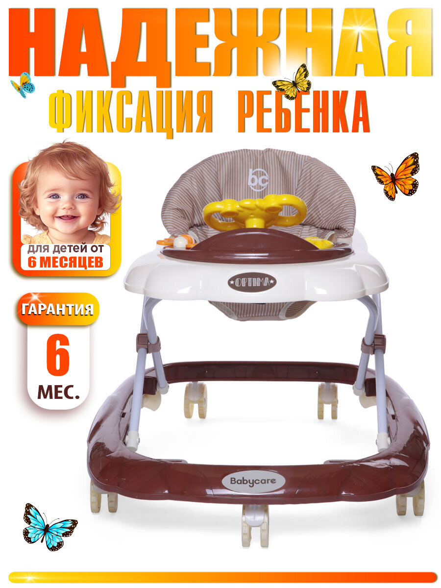 Ходунки BabyCare Optima, для детей 6-24 мес, пластик/текстиль, белый шоколад: сравнение цен, характеристики, фото, актуальное наличие и цены.